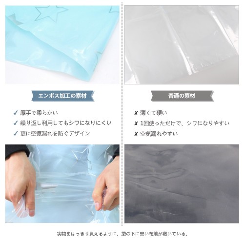 - 【厚手な材料】独特な厚手デザインなので、圧縮袋はさらに柔らかくて、真空で肌にはさらに優しいです。